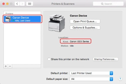 Nếu bạn đang sử dụng Mac OS X 10.7, hãy kiểm tra xem Driver tương ứng với máy in của bạn đang sử dụng đã được chọn [Print Using] chưa.